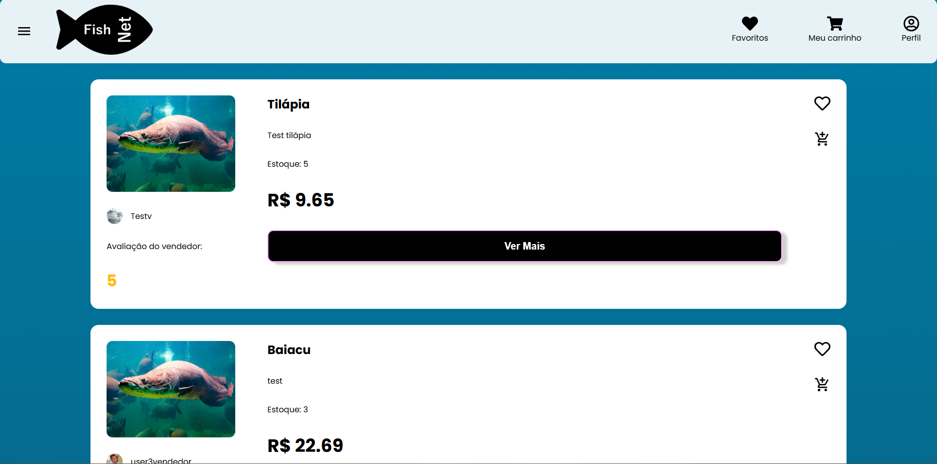 An e-commerce of fishing artifacts, that have the user history of purchases, favorite system.